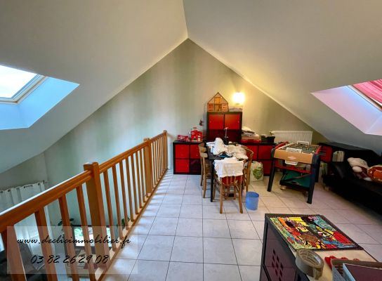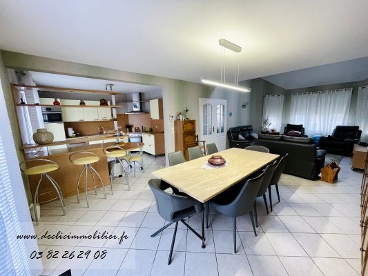Découvrez cette spacieuse maison individuelle en demi niveau à Heumont, située dans un quartier résidentiel et calme. Avec 142 m² habitables et 52 m² d?annexes comprenant garages et buanderie, cette maison est idéale pour une famille en quête de confort et de praticité. Elle dispose d?une grande entrée avec placard aménagé, d'un séjour salon lumineux avec accès direct à la terrasse et d?une cuisine équipée ouverte sur le séjour et sur l?extérieur, permettant de profiter pleinement du jardin. La maison comprend quatre chambres spacieuses et un bureau, ainsi qu?une mezzanine originale qui offre un espace supplémentaire idéal pour se détendre ou travailler. La salle de bains est équipée d?une baignoire et d?une douche, et on a un WC séparé. En demi-niveau inférieur, vous trouverez 2 garages motorisés, une buanderie et un second WC. À l?extérieur, le bien bénéficie d?un beau jardin d?un peu plus de 8 ares avec un chalet de jardin et deux places de parking. Cette maison fonctionnelle, lumineuse et originale est parfaite pour toute famille à la recherche de confort et de calme dans un cadre résidentiel.
